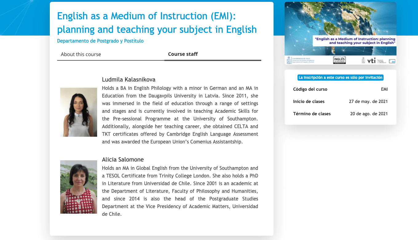 Alicia and her colleague are professors of English as a Medium of Instruction at Universidad de Chile
