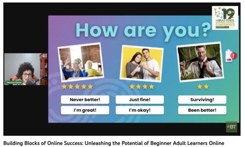 Tamires Gama, Founder and CEO of Simplifica Inglês, gave a key plenary talk on implementing positive online teaching practices to help beginner adult English learners succeed. She first stressed that understanding A1 English students’ capabilities is essential in planning online class curricula, materials, and activities. “We really need to understand what they can do,” she said. “We align expectations, and then we can also accommodate the things that they (students) bring with them, such as background knowledge and the exposure they have.”