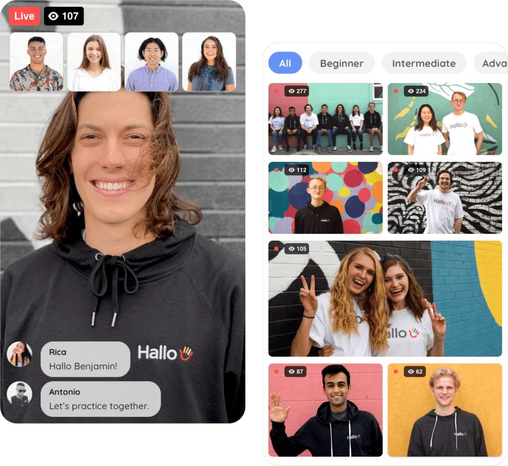 A much younger company than both Duolingo and Lingoda, but proving to be just as disruptive, is Hallo — fresh out of the Silicon Slopes in the heart of Utah. Hallo also focuses on the human element but with an emphasis on learner communities and speaking clubs via livestreaming.