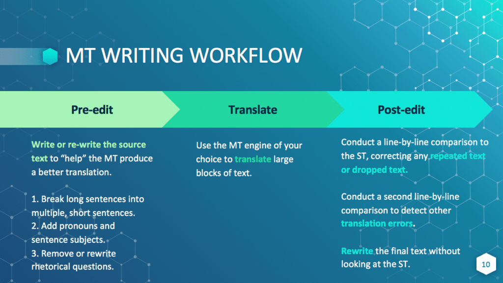 If you were translating a menu or an informational brochure, MT would serve better results than it would for literature. This is one reason the translations you see on websites as you surf the internet are generally entirely adequate to communicate the information there, but if you were seeking a novel to read in translation, you’d want one that had been translated by a human.