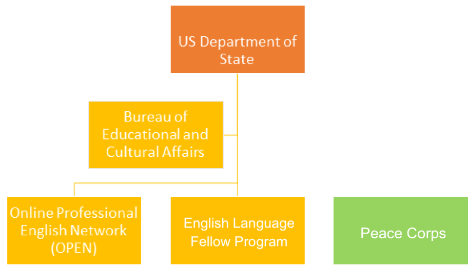 Under the Bureau of Educational and Cultural Affairs is the Office of English Language Programs. The OPEN (Online Professional English Network) is one of the programs managed by the Office of English Language Programs. Yardley explained the purpose of the program’s structure and how RELOs oversee the program.