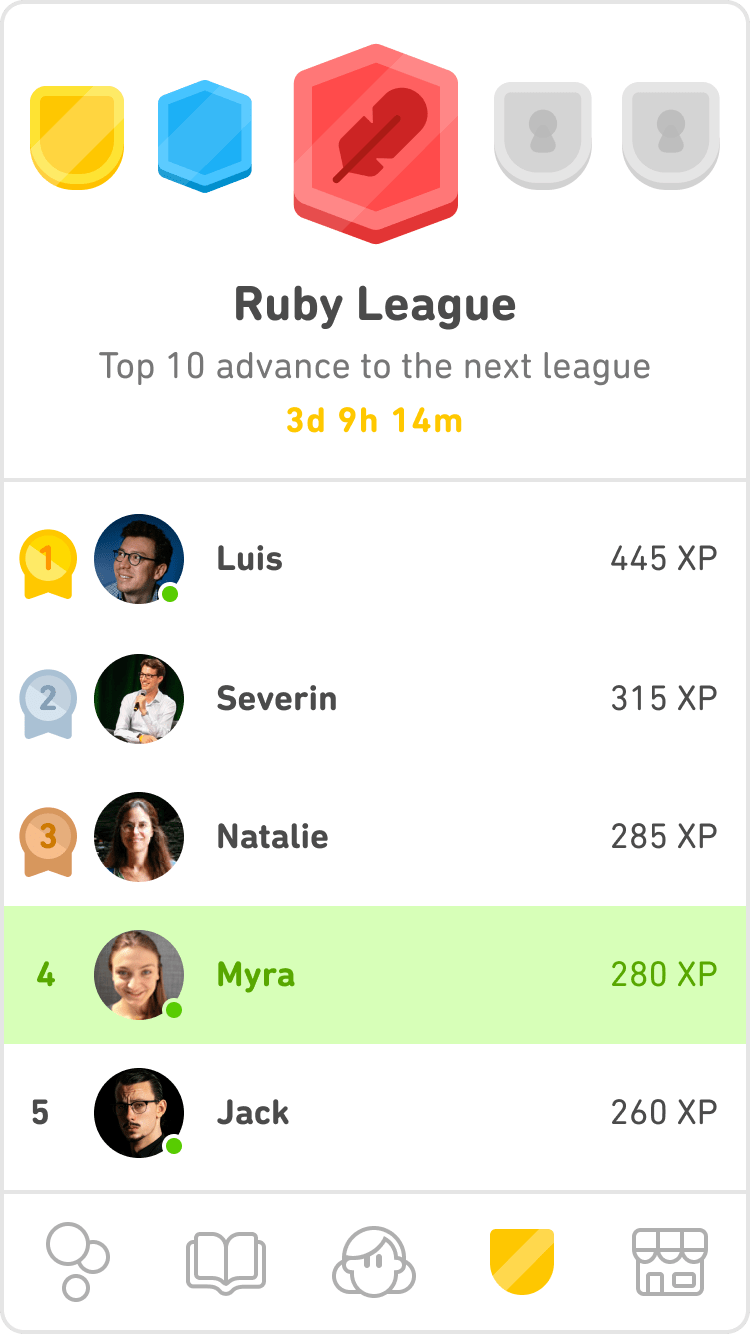 Memrise also relies on gamification as well as spaced repetition to accelerate language acquisition, meaning that the sessions are spaced apart in time, rather than presented in immediate succession. The app helps students immerse themselves in videos that feature real-world situations with native English speakers using its Learn with Locals feature. The feature enhances understanding of words, phrases and sentences spoken by people with real accents, not with flat or neutral emphasis.